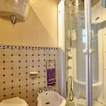别墅私人浴室设有毛巾,淋浴和浴巾.